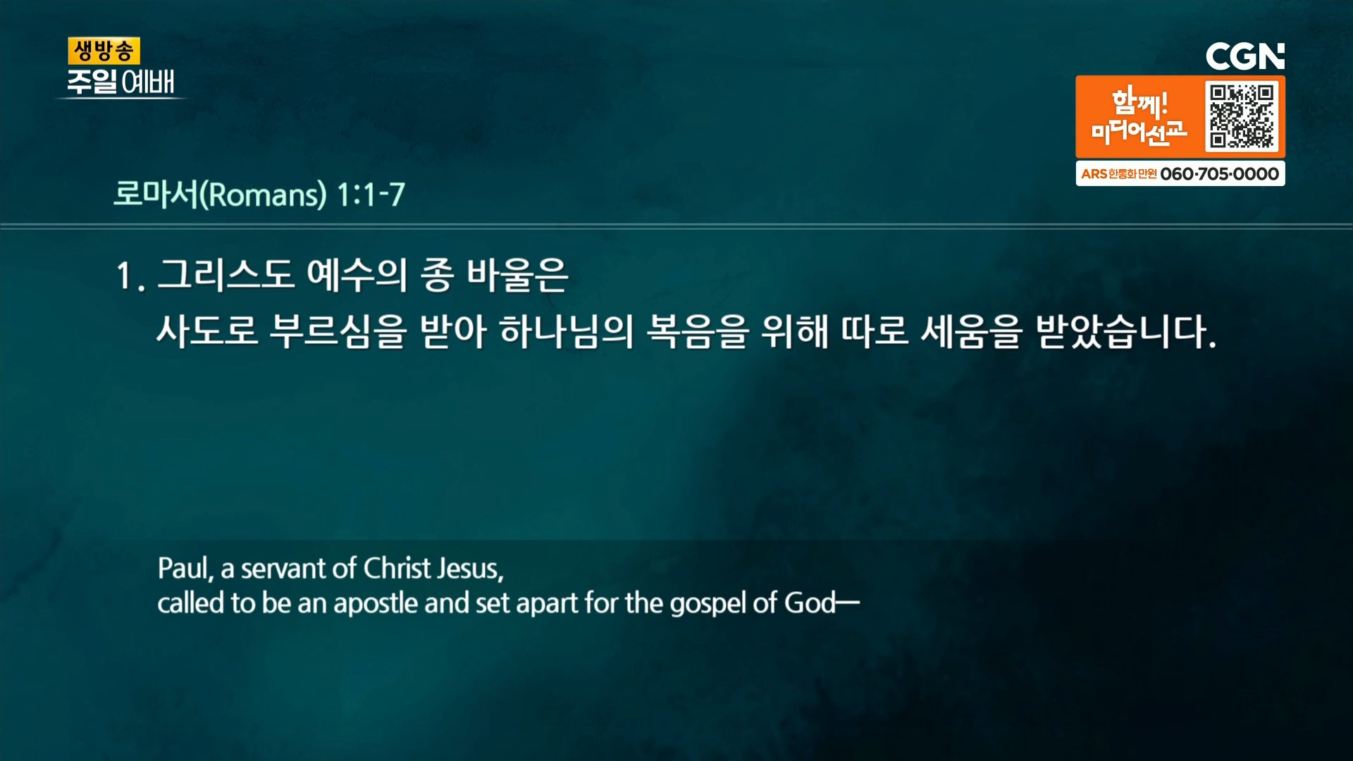 2025년10월26일 주일예배 (마이클오목사님) - 1부주의 말씀 : 오늘날 세상에 필요한 좋은 소식성경 : 로마서(Romas) 1: 1 - 7 말씀 1:1 그리스도 예수의 종 바울은 사도로 부르심을 받아 하나님의 복음을 위해 따로 세움을 받았습니다.1:2 그 복음은 하나님께서 예언자들을 통해 성경에 미리 약속하신 것으로1:3 하나님의 아들에 관한 것입니다. 그분은 육신으로는 다윗의 후손으로 나셨고1:4 성결의 영으로는 죽은 자들 가운데서 부활해 능력 있는 하나님의 아들로 인정되셨으니 바로 우리 주 예수 그리스도십니다.1:5 우리가 예수 그리스도를 통해 은혜와 사도직을 받았으니 이는 그분의 이름을 위해 모든 이방 사람들이 믿고 순종하도록 하기 위해서입니다.1:6 여러분 역시 그들 가운데 부르심을 받아..