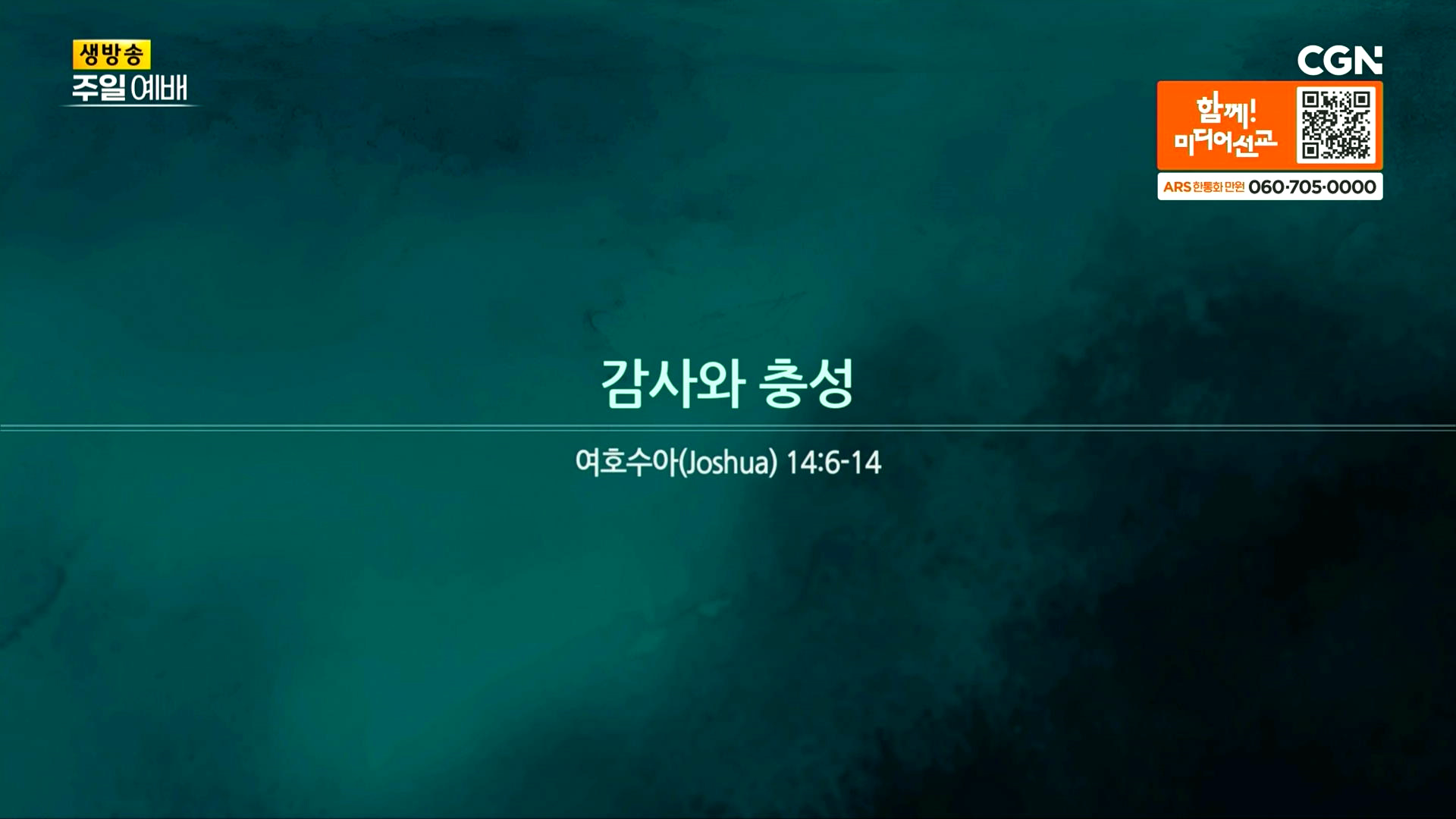 2025년10월12일 주일예배 (이재훈목사님) - 1부주의 말씀 : 감사와 충성성경 : 여호수아(Joshua) 14: 6 - 14 말씀 14:6 그러자 유다 자손들이 길갈에 있는 여호수아에게 찾아갔습니다. 그니스 사람인 여분네의 아들 갈렙이 여호수아에게 말했습니다. “여호와께서 가데스 바네아에서 당신과 나에 대해 하나님의 사람 모세에게 말씀하신 것을 당신께서는 아십니다.14:7 여호와의 종 모세가 가데스 바네아에서 이 땅을 정탐하라고 나를 보냈을 때 내 나이 40이었습니다. 그때 나는 내 마음에 확신이 서는 대로 그에게 보고했습니다.14:8 그런데 나와 함께 올라갔던 내 형제들은 백성들의 마음을 약하게 했습니다. 그래도 나는 마음을 다해 내 하나님 여호와를 따랐습니다.14:9 그러자 그날 모세가 내게 ..