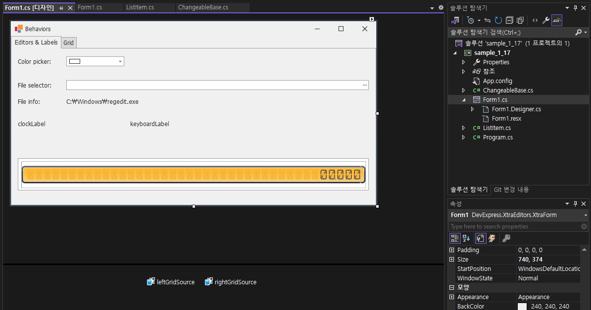 - Behaviors 컴포넌트를 통한 기능관리 및 DataGrid 간의 자료 이동에 대해서 간락하게 알아보겠습니다. (1) 프로그램 구성 - 프로그램 구성과 소스 - 프로그램 실행시 아무 기능도 없어 Behaviors 컴포넌트 기능을 활용하여 기능을 넣어 보겠습니다. - 설명할 화면이 많아 길어질것 같습니다. (2) Behaviors 컴포넌트 추가 (Color picker) - colorEdit1 -> Add Behaviors 클릭 - Collection Editor Behaviors 팝업창에서 Add Magnifier Behavior 클릭시 아래 컴포넌트도 자동생성됩니다. - Magnifier Behavior 확인후 'OK' 클릭 - 프로그램 실행후 기능확인 - 돋보기 클릭시 커다란 돋보기가 표시되고,..