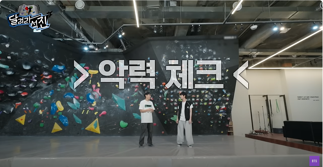 [달려라 석진] EP.22 석진이를 이겨라 (feat. 클라이밍) [달려라 석진] EP.22 석진이를 이겨라 (feat. 클라이밍) 1. 석진의 압력체크 2. 지구력 체크 #1 2. 지구력 체크 #2 클라이밍의 진심 미션 1. 클라이밍 큐 미션 2. 클라이밍 빙고 https://www.youtube.com/watch?v=N6SBPaCYhV4 방탄소년단(BTS)/BTS 2025.02.18