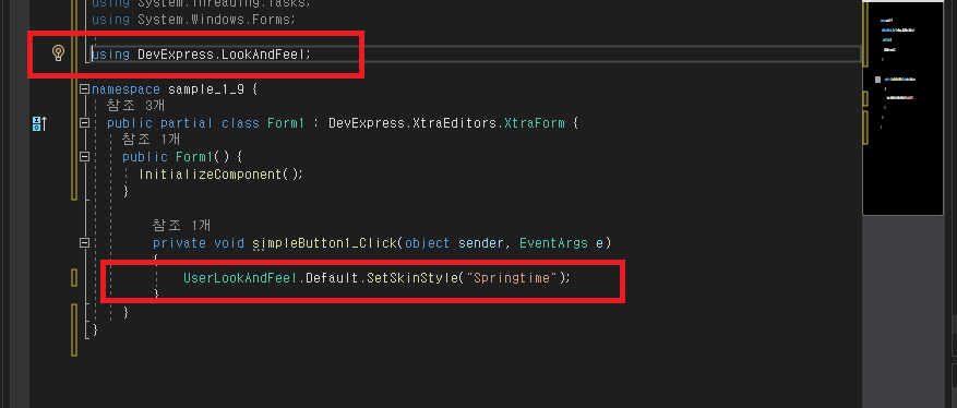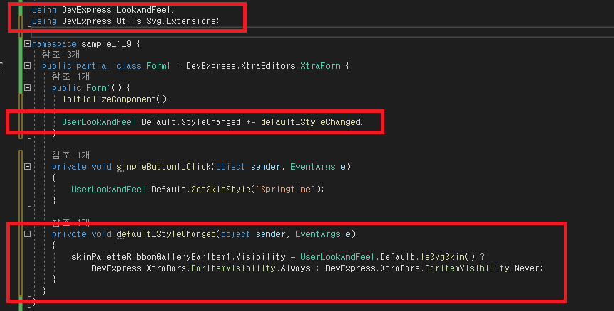 - 참고로 Skin 관련 라이브러리는 DevExpress.LookAndFeel를 사용합니다.