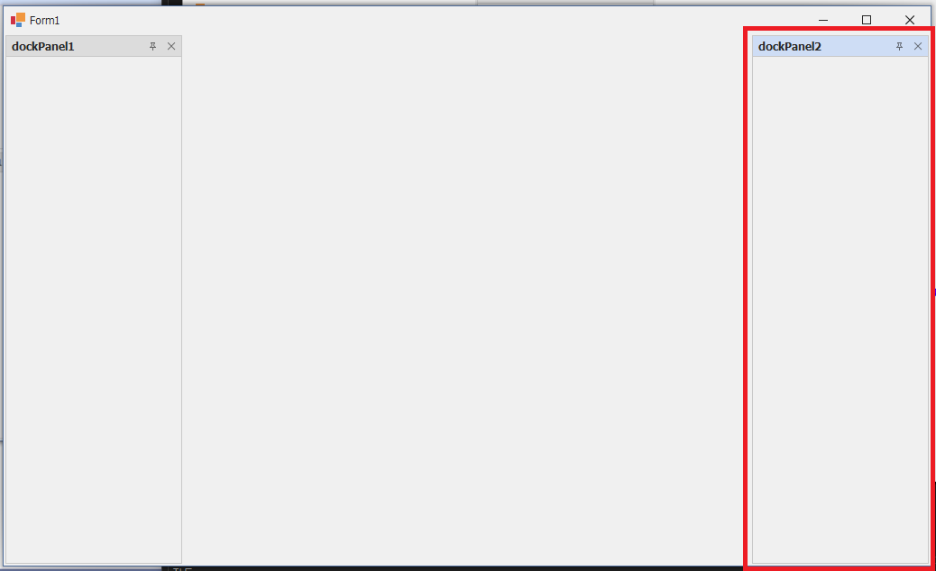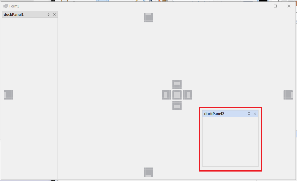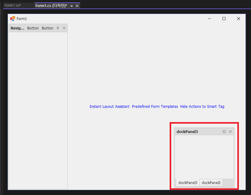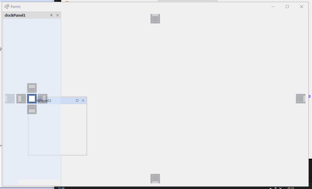 - 추가된 dockPanel2를 마우스 왼쪽클릭한 상태에서 움직이면 아래와 같은 화면이 나오게 됩니다.