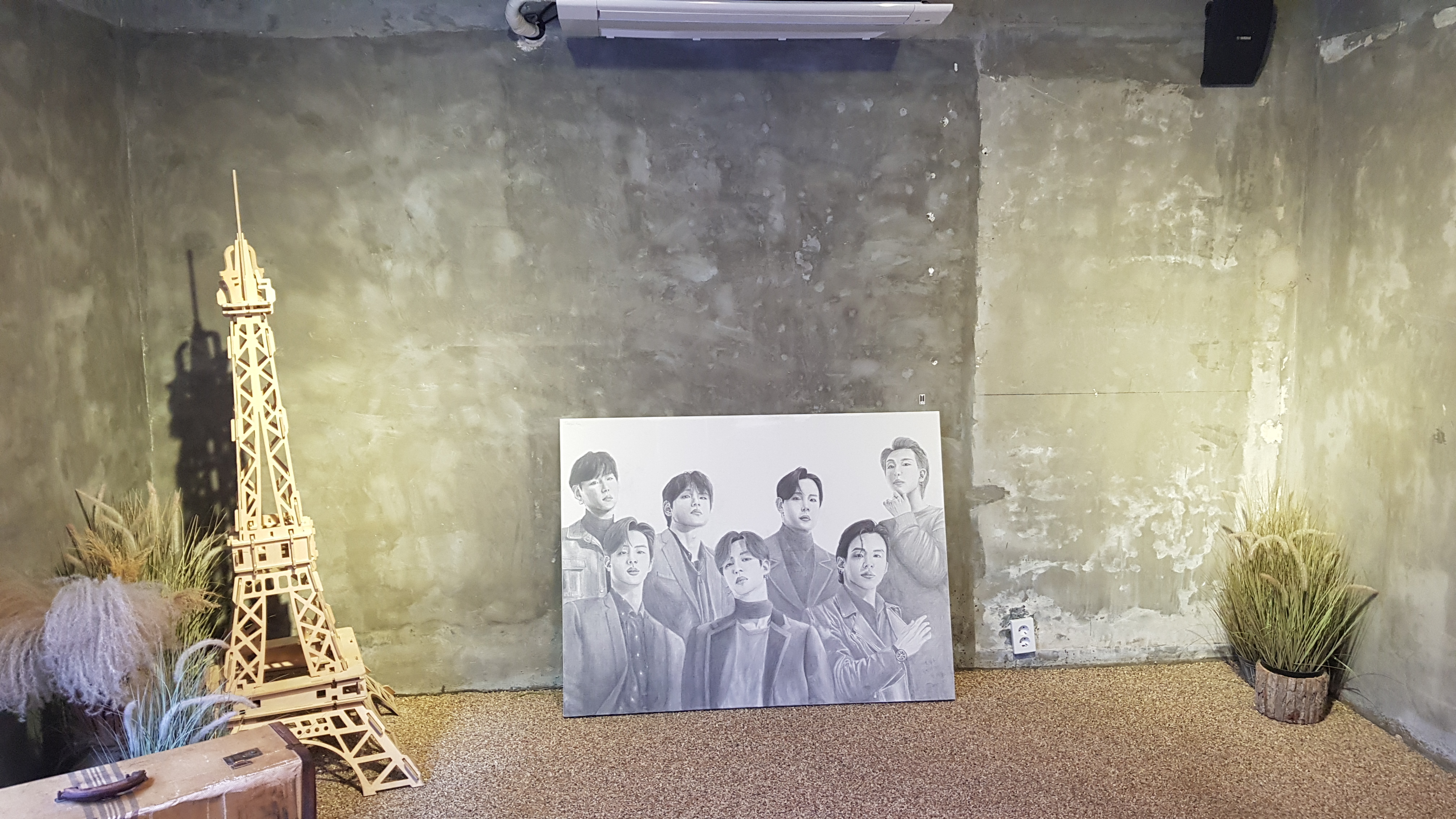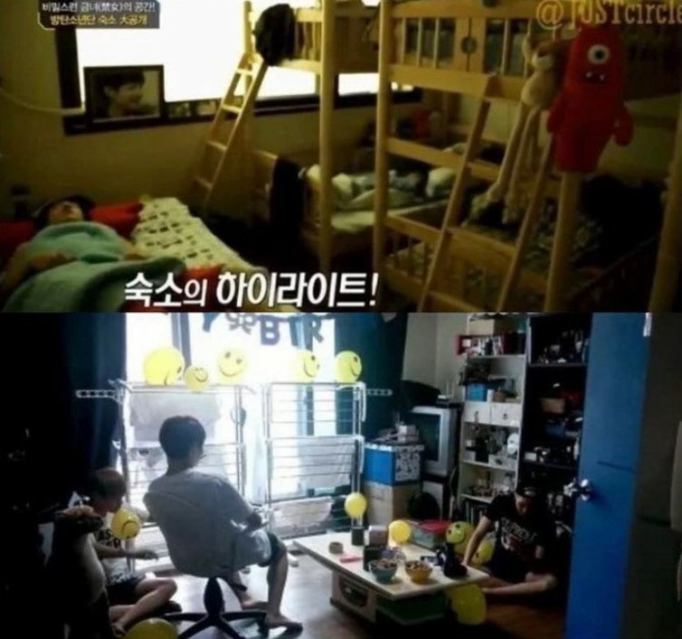 - 문을 열고 들어가 보니 BTS 멤버가 방겨주네요.