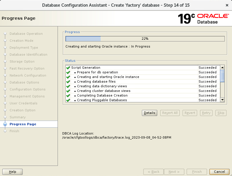 - Finish 선택하면 이제 DB를 생성하기 시작합니다.
