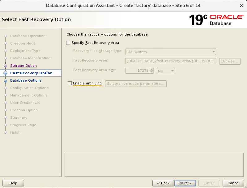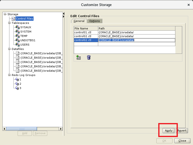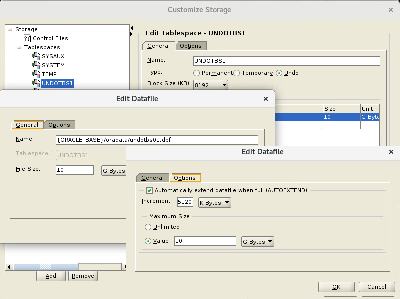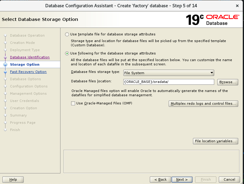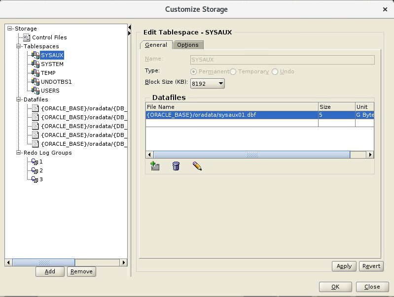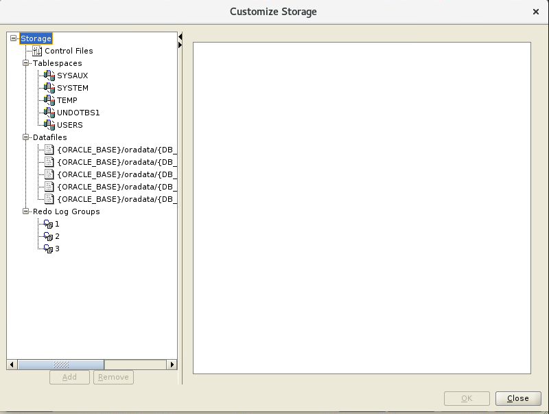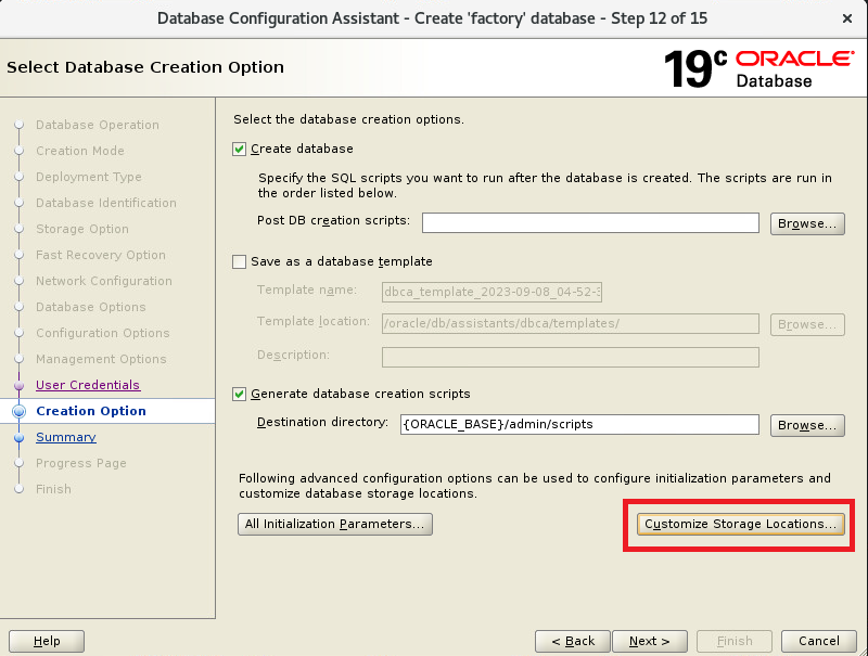 - Customize Storage Locations 선택 : 이곳은 DB 생성 위치/크기/옵션을 선택하는 곳입니다.