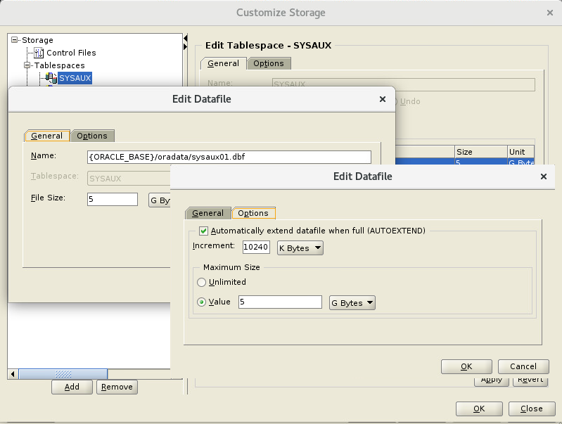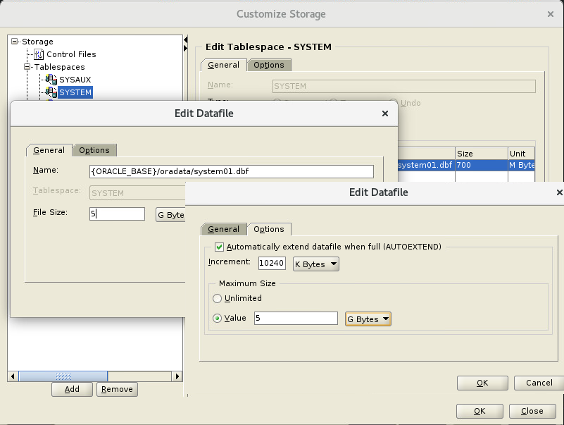 - 기본 사이즈를 5GB로 수정, Options에서 Unlimited -> Value 5GB로 변경 (자동증가를 차단 수동모드로 변경)