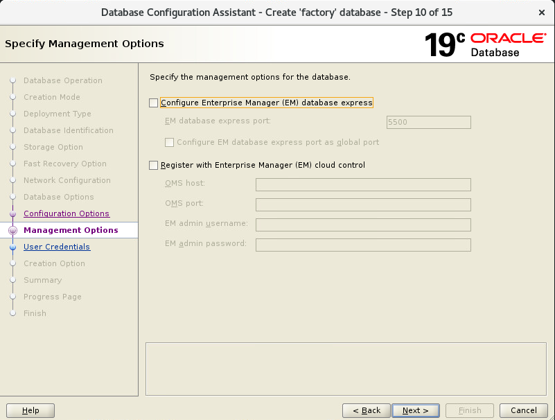 - 관리자 접속(EM) 사용여부 입니다. 오라클에서 지원하는 웹관리화면 입니다.(비추)