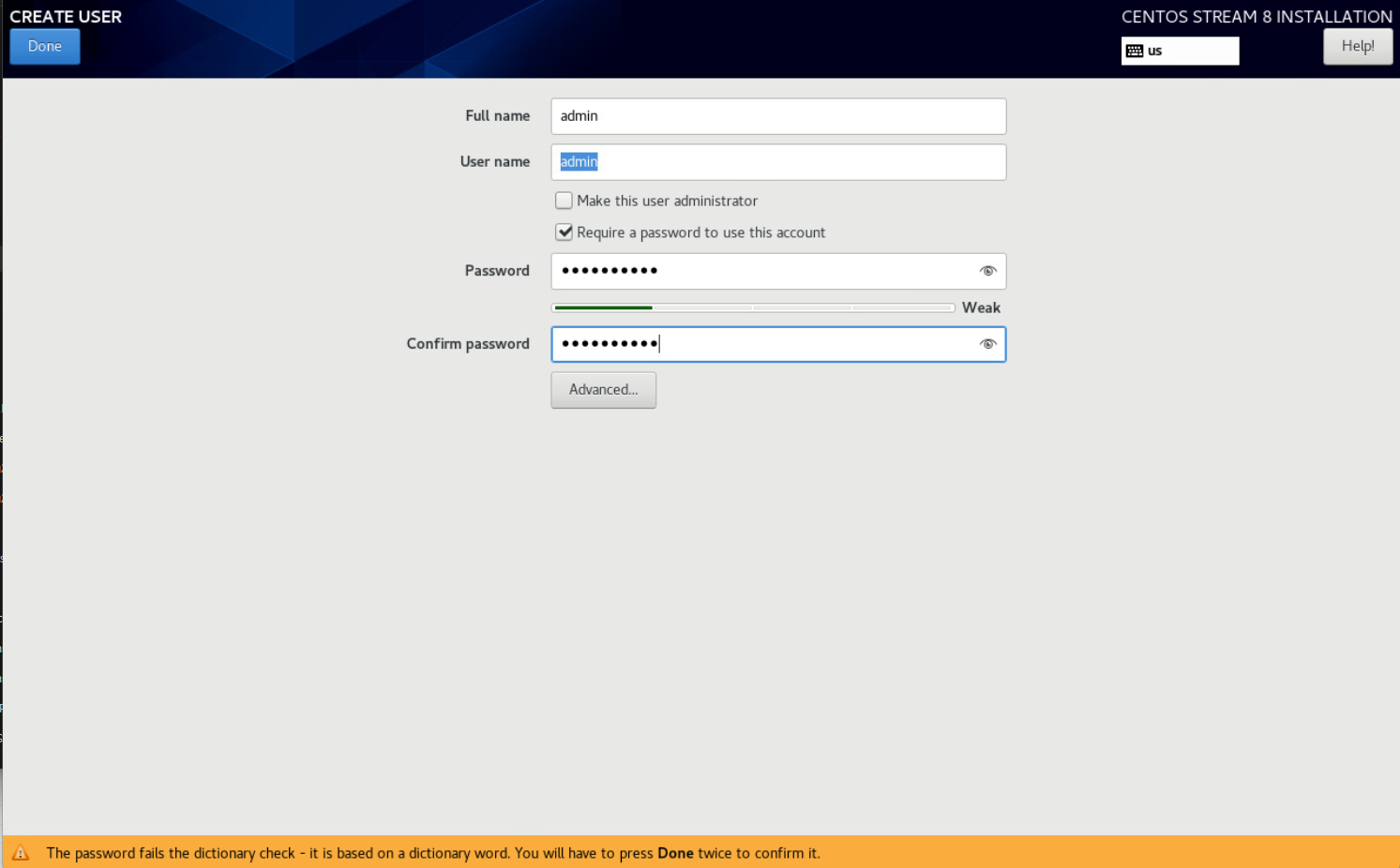 설정 순서 : Language -> Time -> SoftWare -> Installation Destination -> kdump -> root password -> user creation