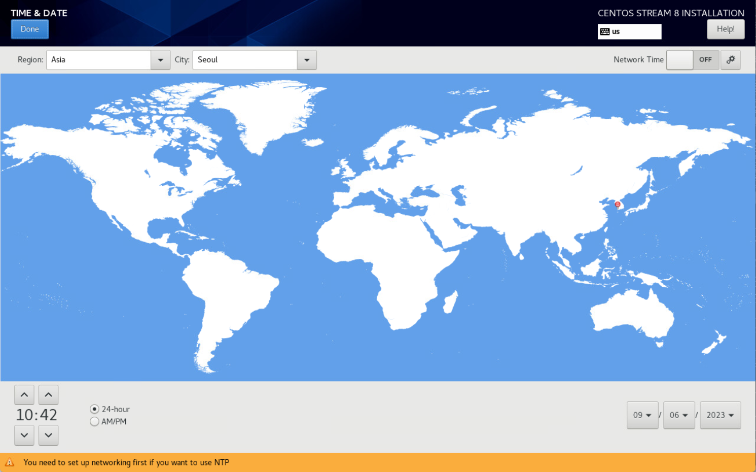 (2) Time & Date (Asia, Seoul 선택 - 지도에서 한국을 선택하면 자동 변경)