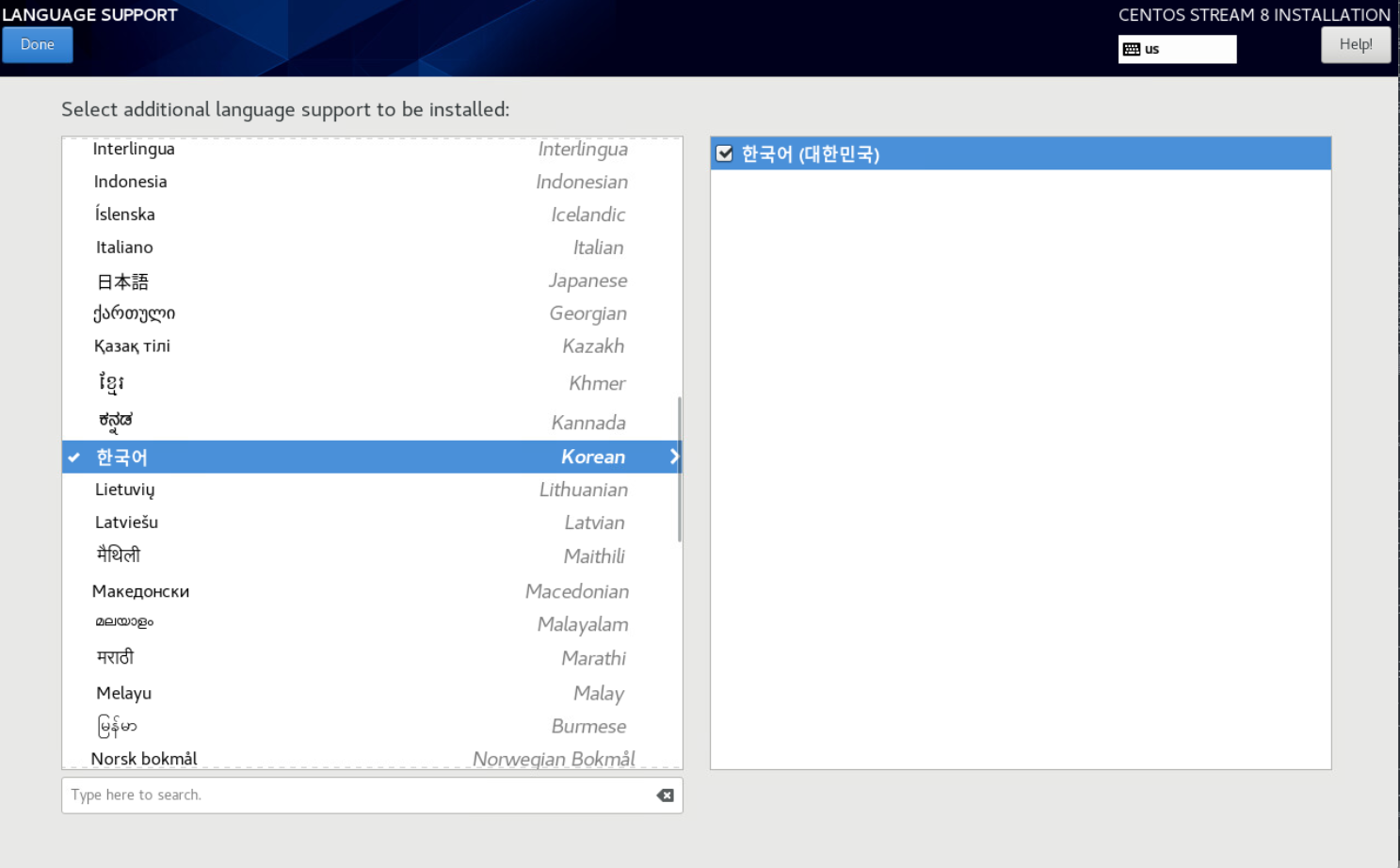 (1) Language Support (기존영문에 '한국어' 추가 선택)