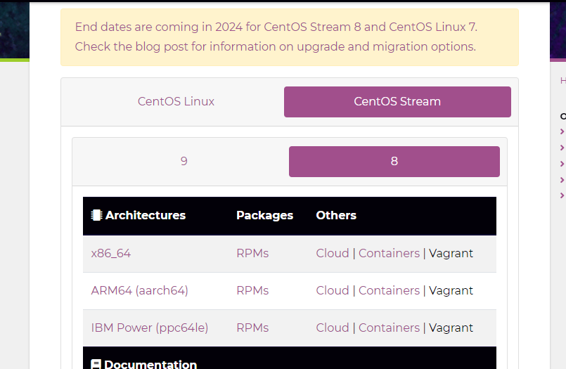 Home Download Architectures Packages Others x86_64 RPMs Cloud | Containers | Vagrant ARM64 (aarch64) RPMs Cloud | Containers | Vagrant IBM Power BE (ppc64) RPMs Cloud | Containers | Vagrant IBM Power (ppc64le) RPMs Cloud | Containers | Vagrant ARM32 (armhf