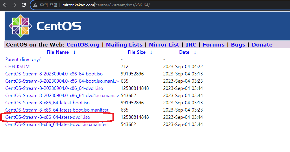 http://mirror.kakao.com/centos/8-stream/isos/x86_64/