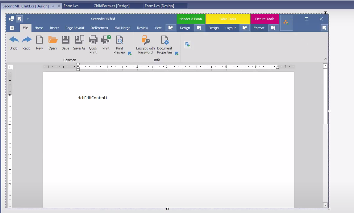 - 부모 MDI Form -> riboonControl1 -> MdiMergeStyle -> (Default -> Always)