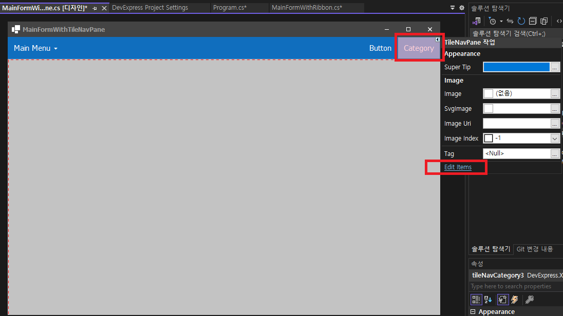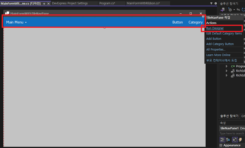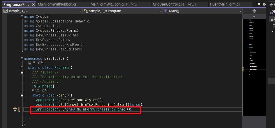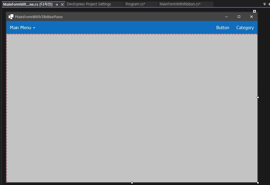 - Program.cs 코드를 다시 변경합니다. ( MainFormWithTileNavPane )
