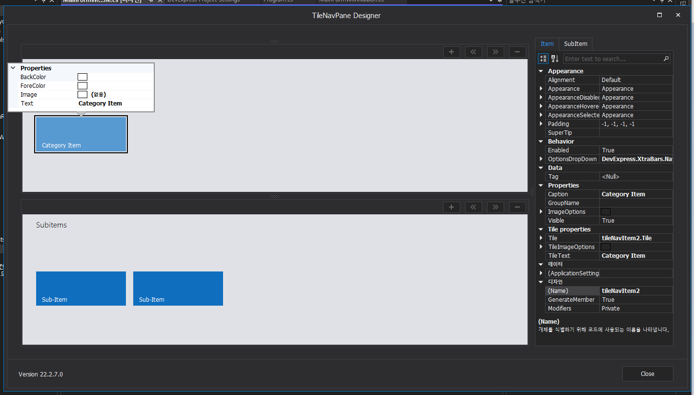 - MainFormWithTitleNavPane Disign 확인