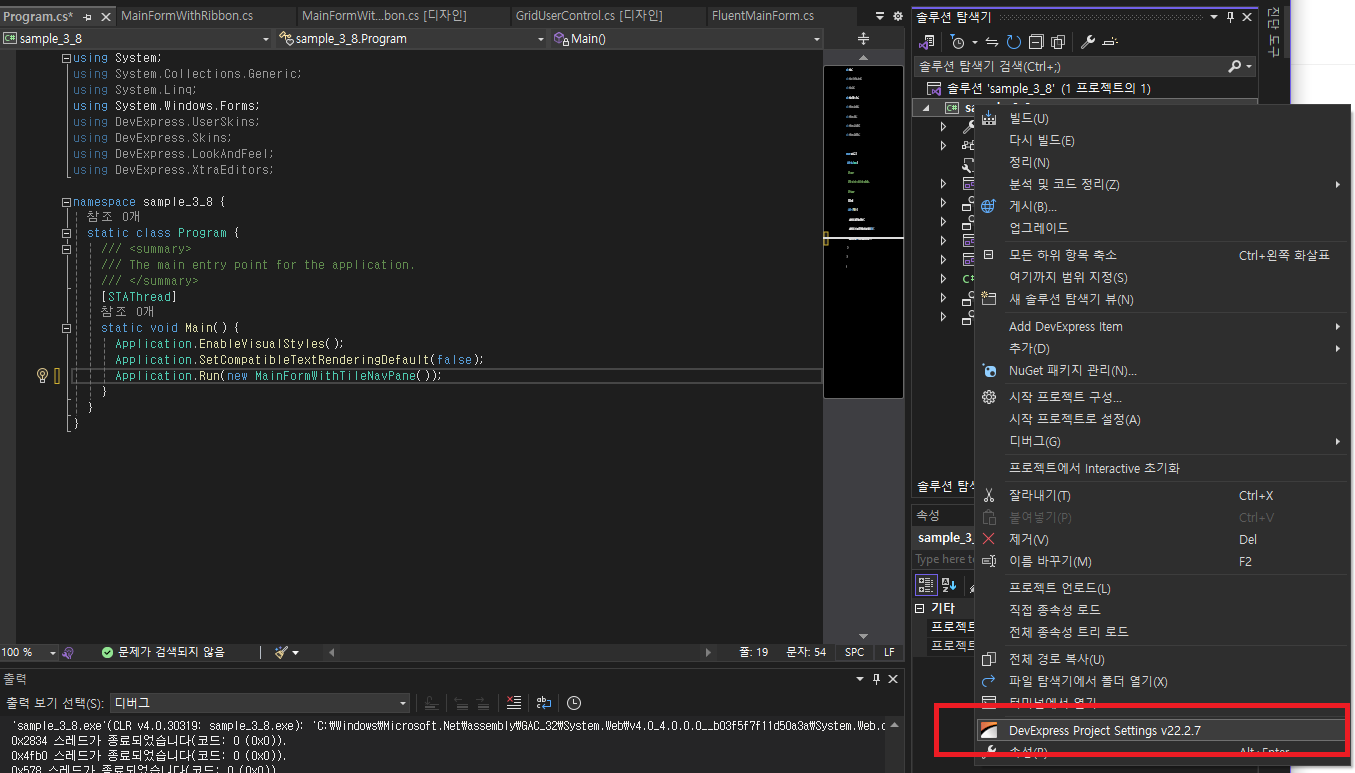 - DevExpress 프로젝트 설정을 변경합니다.