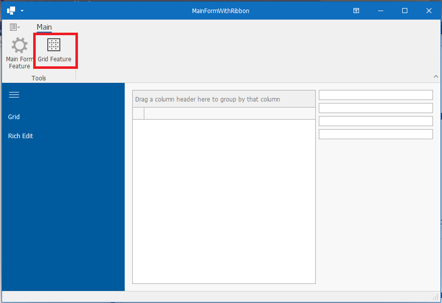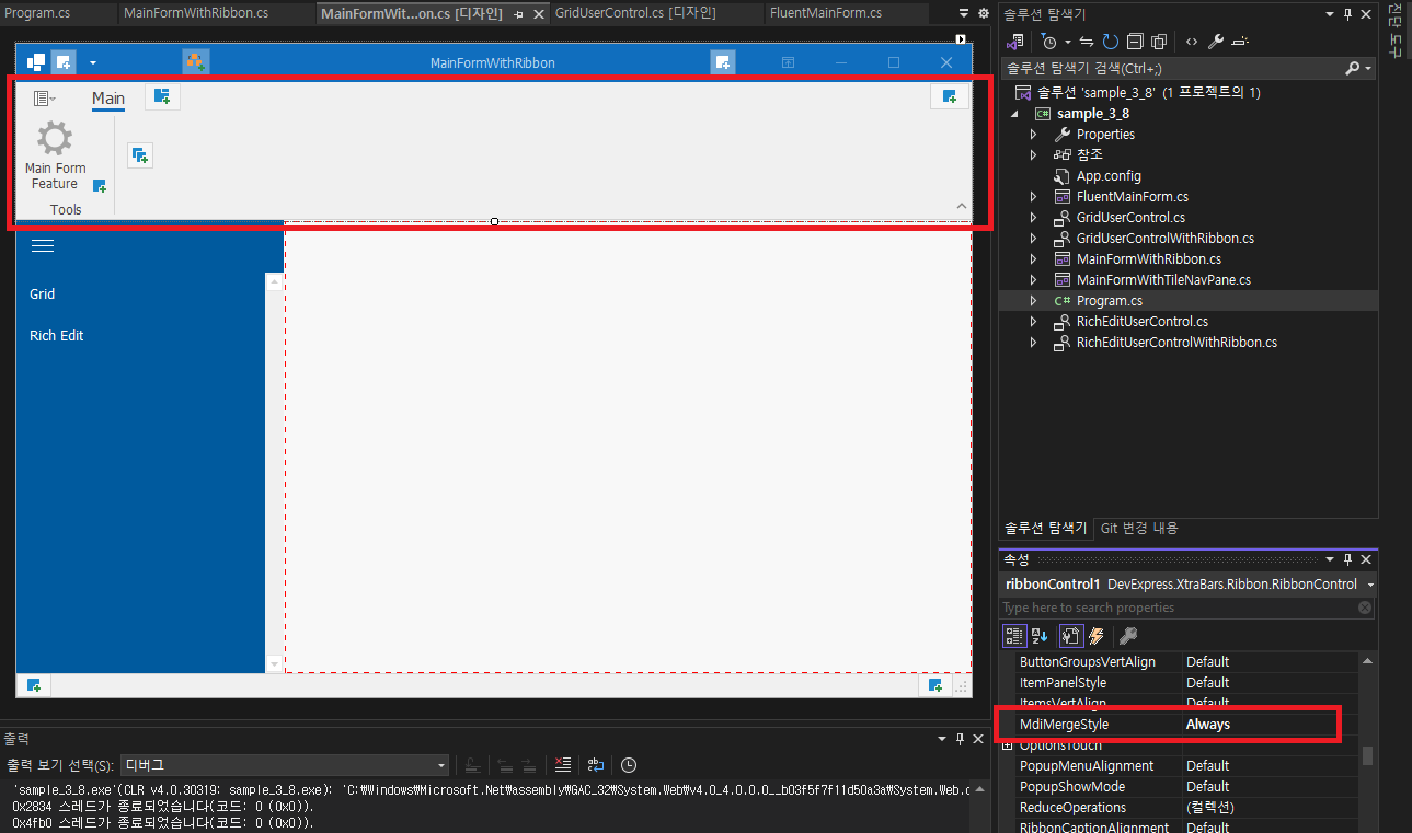 - MainFormWithRibbon 데모에서 이러한 구성을 확인해 보겠습니다.