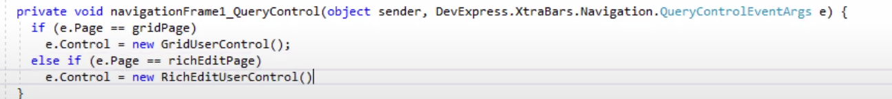 - Navigation Frame에 이벤트 핸들러 쿼리 컨트롤을 구현하고, 이벤트 아크의 페이지에 따라 새 컨트롤을 반환합니다.