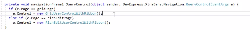 - 두 번째는 navigationFrame1 데모의 마지막 부분에 리본과 막대 병합 스타일이 설정되어 있습니다.