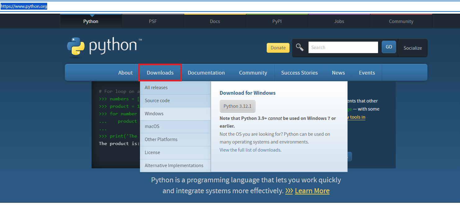 - 오늘 날짜 2024/02/04 기준 Windows Latest: Python 3.12.1 버젼 입니다.
