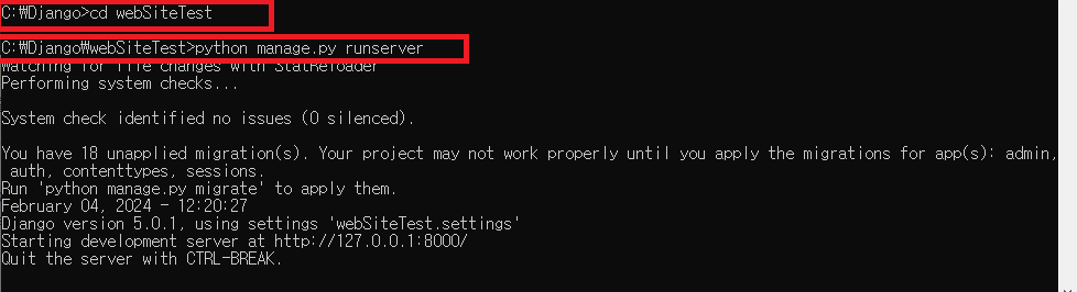 (3) Django(장고) 프로젝트 웹(Web) 접속 테스트