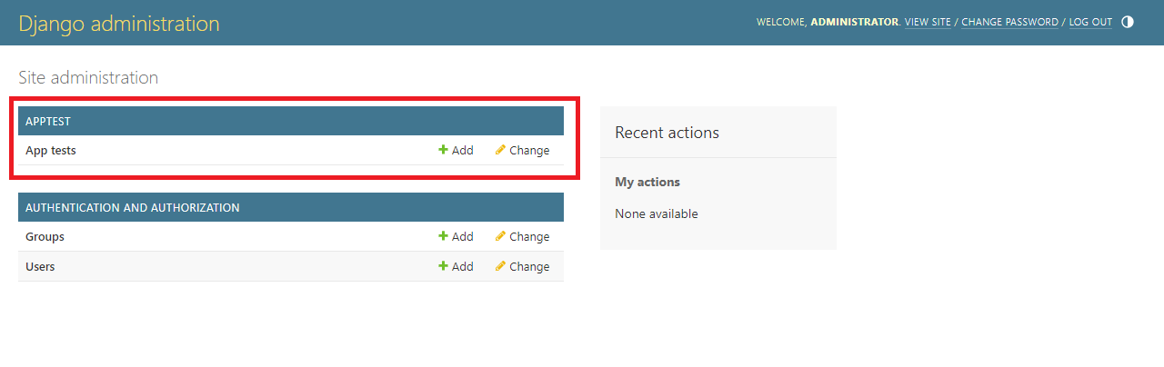 - 관리자 화면에서 확인할 수 있게 appTest 폴더 admin.py를 수정