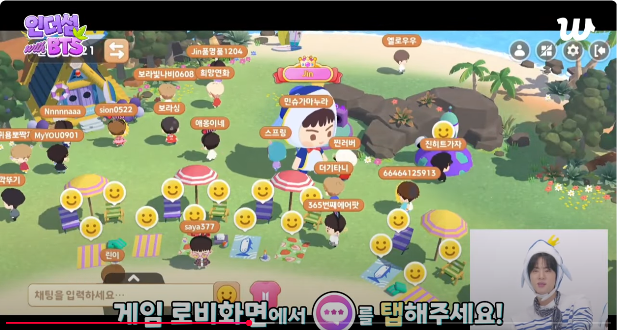 - 인더섬의 참치모자를 쓴 석진 케릭터
