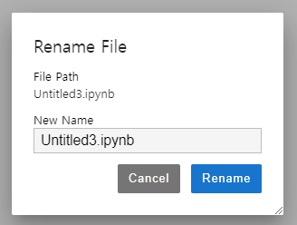 - 노트북을 새로 생성하면 'Untitled' 혹은 'Untitled숫자'로 저장됩니다.