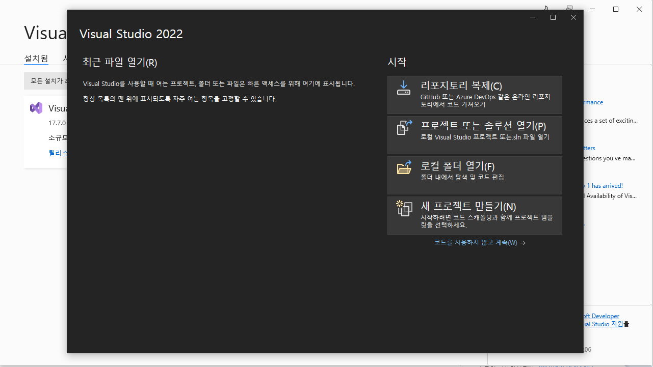 1. Visual Studio 2022 설치 (VS2022 설치)