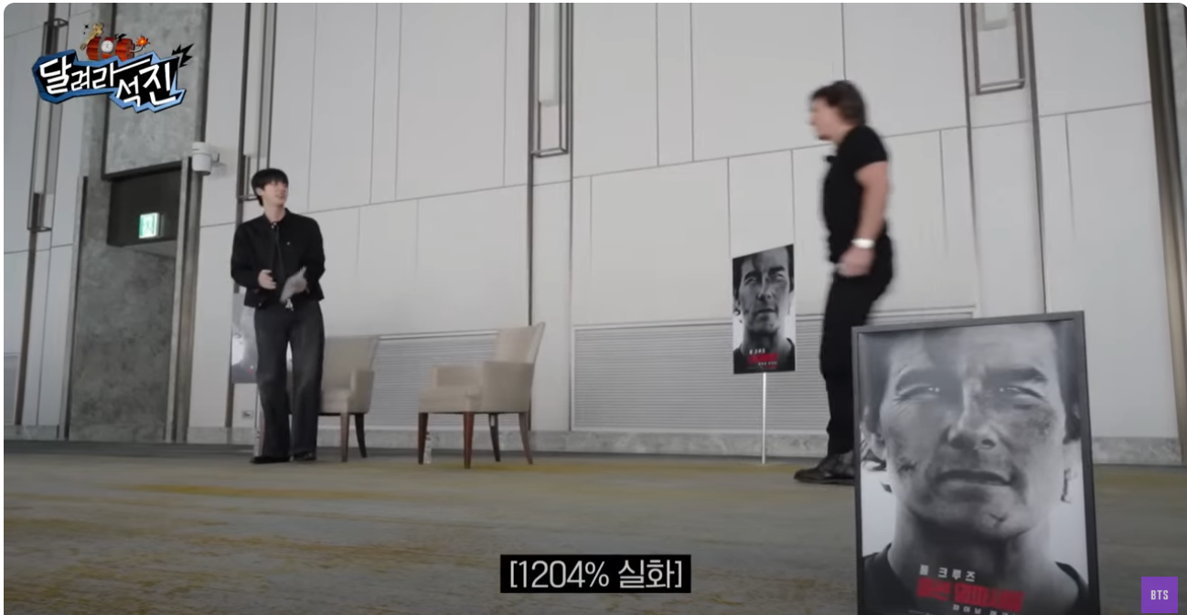 [달려라 석진] EP.35 미션: 진파서블 [달려라 석진] EP.35 미션: 진파서블 게스트 : 톰 크루즈 질문> 촬영중 비하인드가 있다면? 질문> 비행기해서 안떨어지고 어떻게 안 떨어질 수 있는지가? 질문> 인사> 톰 구루즈 팬분들에게 인사 한마디 부탁드려도 괜찮을까요? 미션> 진, 당신에게 주어진 미션들을 해결하고 폭탄을 해체하세요. (장소:양평군)- 제한 시간 15분 안에 주어진 미션을 성공하고, 폭탄을 제거해 인류를 구하라! 미션 1>미션 2>미션 3>미션 4> https://www.youtube.com/watch?v=zk7DO9hhd7I 방탄소년단(BTS)/BTS 2025.05.20